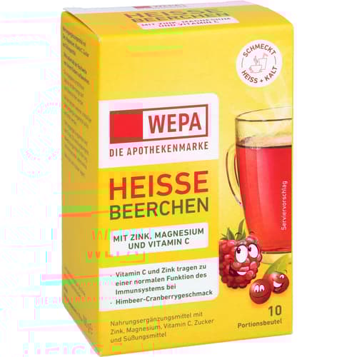 WEPA Heisse Beerchen mit Zink, Magnesium und Vitamin C Pulver mit Himbeer-Cranberrygeschmack, 10 St. Beutel