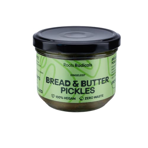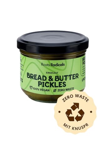 Hol dir jetzt die Brot- und Buttergurken von Roots Radicals – traditionell eingelegt, revolutionär gedacht!