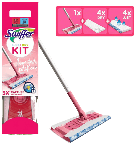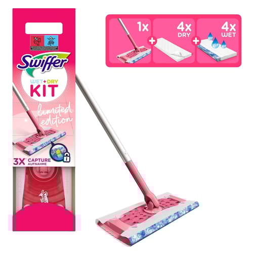 Swiffer Pink Bodenwischer Starter-Set Mit 1 Bodenwischer Sowie 4 Trockenen Und 4 Feuchten Bodentüchern