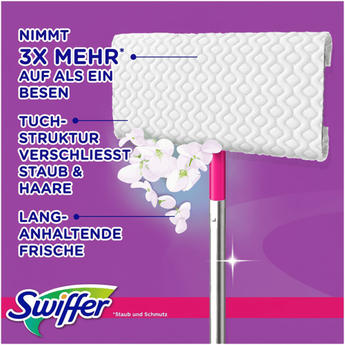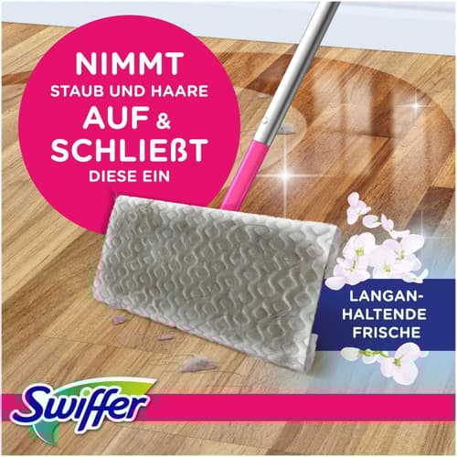 Das Swiffer Bodenwischer Starter-Set bietet eine praktische Lösung für die Reinigung Ihrer Böden. Es enthält einen Bodenwischer, 4 trockene und 4 feuchte Bodentücher, die Staub, Haare und Schmutz effektiv einfangen und einschließen.