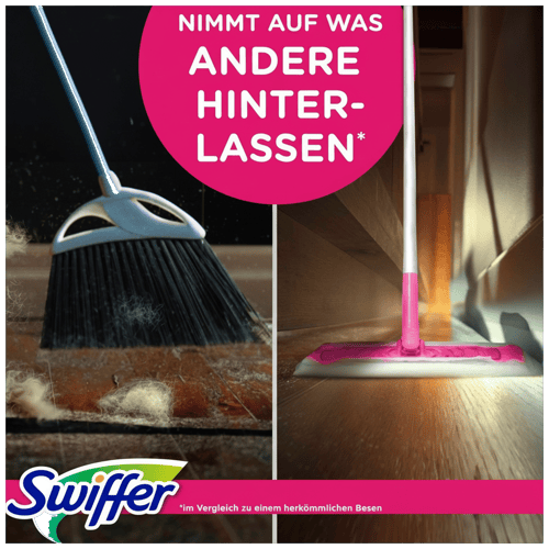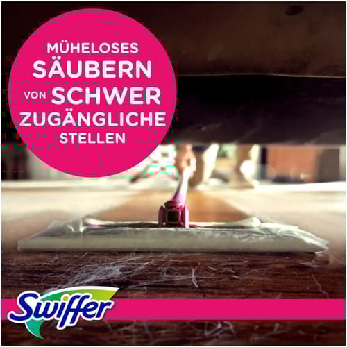 Die trockenen Tücher eignen sich ideal zum Staubwischen, während die feuchten Tücher hartnäckige Flecken lösen. Der schwenkbare Kopf ermöglicht die Reinigung schwer zugänglicher Stellen wie unter Möbeln. Geeignet für viele Oberflächen, einschließlich behandelter Holzböden.