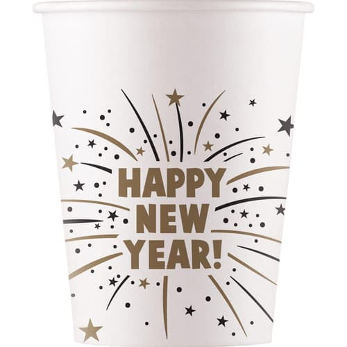 Pappbecher Happy New Year Flares 200 ml 8 Stück