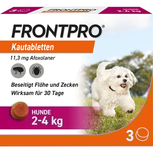 FRONTPRO Kautabletten gegen Zecken und Flöhe für Hunde (2-4kg), 3 St. Kautabletten