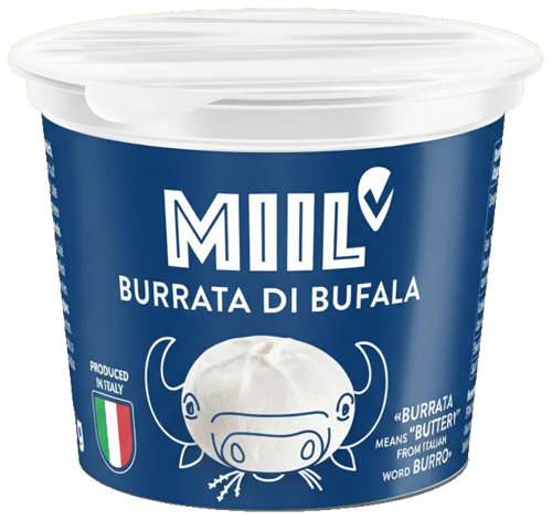 Miil Büffel-Burrata ist ein cremiger Frischkäse aus Büffelmilch. Ideal für die Zubereitung von Salaten oder als Beilage zu mediterranen Gerichten.