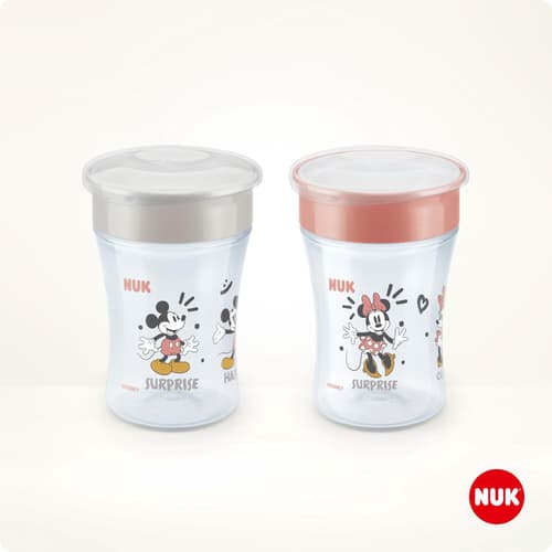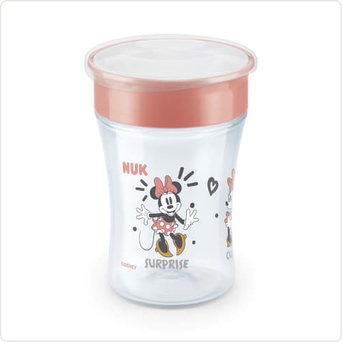 Der NUK Disney "Minnie" Magic Cup ist ideal für Kinder ab 8 Monaten. Mit einem Fassungsvermögen von 230 ml und einem 360°-Trinkrand ermöglicht er das Trinken von allen Seiten. Dank der Silikondichtscheibe ist der Becher auslaufsicher und mit einer Schutzkappe für unterwegs ausgestattet.