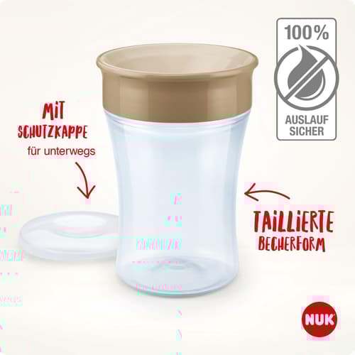 Lesen Sie sorgfältig die Warn- und Gebrauchshinweise im Inneren. Bitte Produktinformation und Artikel-/LOT-Nr. zur späteren Verwendung aufheben. NUK Cups und Trinkaufsätze sind nur mit der jeweiligen Produktreihe kombinierbar.