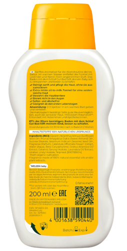 Weleda Calendula Schlaf Gut Bad ist ein beruhigendes Badezusatzprodukt, das speziell für die Abendroutine entwickelt wurde. Es enthält natürliche Inhaltsstoffe wie Calendula, die für ihre entspannenden Eigenschaften bekannt sind.