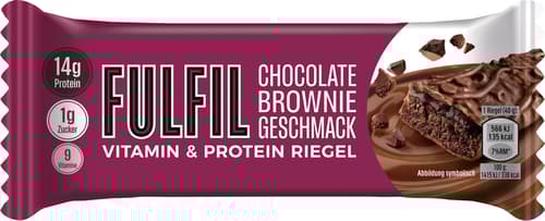 FULFIL Chocolate Brownie ist ein Proteinriegel mit hohem Proteingehalt und niedrigem Zuckergehalt. Jeder Riegel enthält 15-20 Gramm Protein und nur 1 Gramm Zucker.