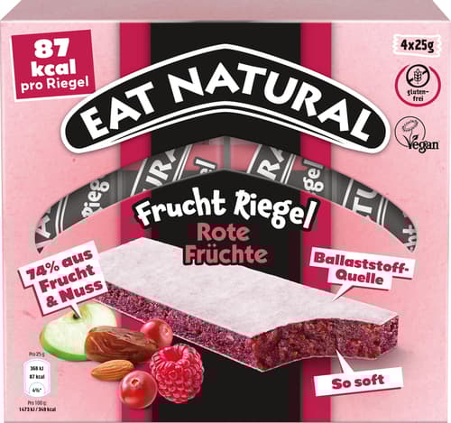 EAT NATURAL Frucht Rote Früchte 4er ist ein hochwertiger Snack, der auf natürlichen Zutaten basiert. Die Kombination aus roten Früchten bietet einen fruchtigen Genuss für bewusste Ernährung.