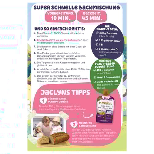 Pumpkin Organics Bluey Bio Hafer & Dinkel Bananenbrot Backmischung