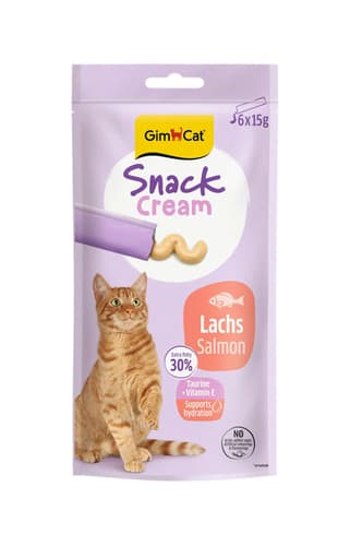 GimCat Snack Cream Lachs ist ein cremiger Snack für Katzen mit hohem Fischanteil, der für eine hohe Akzeptanz sorgt. Die Rezeptur ist getreidefrei und enthält kein zugesetzten Zucker oder künstliche Farb- und Aromastoffe.