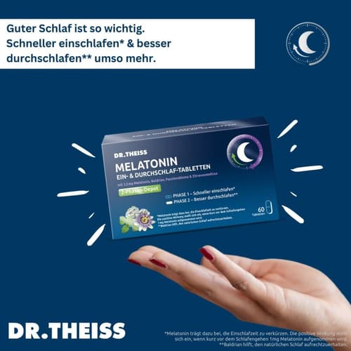 DR. THEISS Melatonin Ein-& Durchschlaf-Tabletten, 60 St. Tabletten64 gDieses Produkt ist nicht mehr verfügbar.Herkunftsland:laut dem aktuellen AngebotBitte kontaktiere unseren Kundenservice, um genauere Informationen zu erhalten.