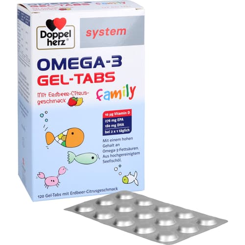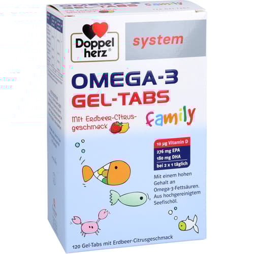 Doppelherz system Omega-3 family Gel-Tabs Erdbeer-Zitrusgeschmack, 120 St. Kautabletten