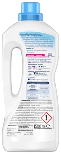 Verleihen Sie Ihrer Wäsche hygienische Sauberkeit und langanhaltende Frische. Der IMPRESAN Hygiene-Spüler Universal befreit Ihre Wäsche in einem einzigen Spülgang von mehr als 99,9 Prozent spezieller Bakterien, Pilze und Viren und reduziert geruchsbildende Keime.