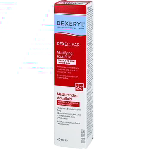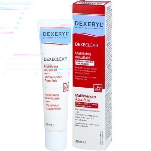 DEXECLEAR mattierendes Aquafluid SPF 50+ bei unreiner Haut, Pickeln und zu Akne neigende Haut, 40 ml Creme