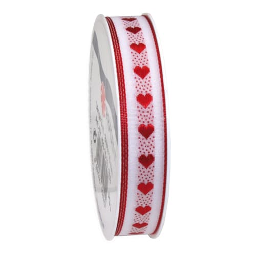 PRÄSENT Satinband Herzilein Herzen rot weiß 15mmx3m