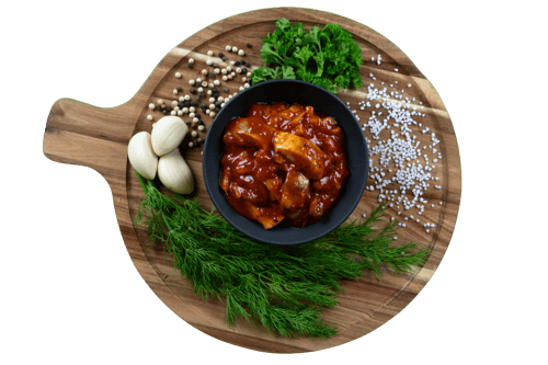 - Typisch nordisch: Harmonisch abgeschmeckte Heringsfilets mit frischer Tomate, Gurke und Zwiebel – kräftig, aber ausgewogen im Geschmack.