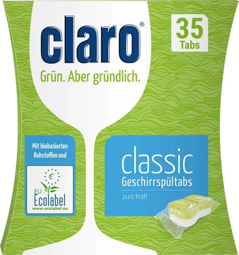 Die claro Classic Tabs bieten eine effektive Reinigung für Geschirr und Besteck. Die Tabs lösen sich Schicht für Schicht auf und entfernen hartnäckigen Schmutz mit speziellen Enzymen und Wirkstoffen.