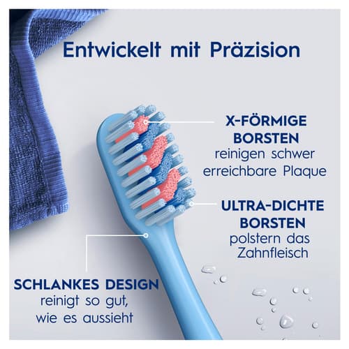 Die Oral-B Pro-Clean Clinical Zahnbürste bietet eine effektive Reinigung und ist sanft zum Zahnfleisch. Mit ihren ultra-dichten, X-förmigen Borsten entfernt sie Plaque auch an schwer erreichbaren Stellen. Der kleine Bürstenkopf erleichtert den Zugang zu allen Bereichen.