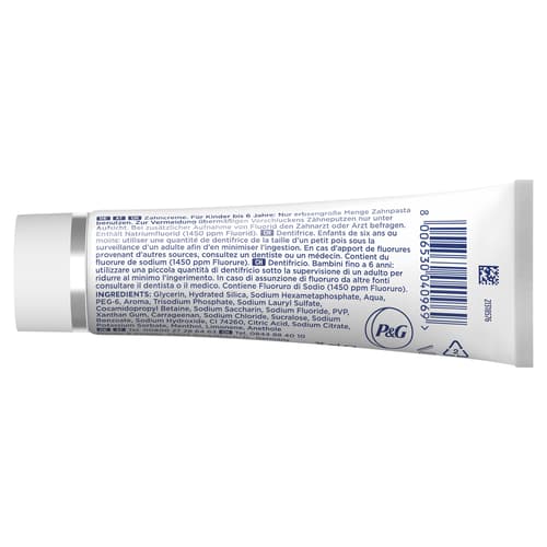 Ingredients: Glycerin, Hydrated Silica, Sodium Hexametaphosphate, Aqua, PEG-6, Aroma, Trisodium Phosphate, Sodium Lauryl Sulfate, Cocamidopropyl Betaine, Sodium Saccharin, Sodium Fluoride, PVP, Xanthan Gum, Carrageenan, Sodium Chloride, Sucralose, Sodium Benzoate, Sodium Hydroxide, CI 74260, Citric Acid, Sodium Citrate, Potassium Sorbate, Menthol, Limonene, Anethole