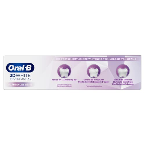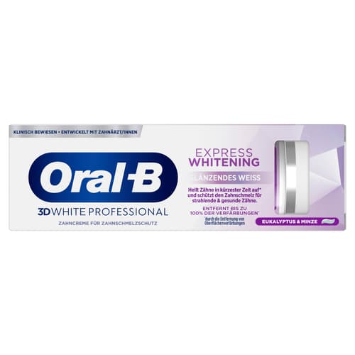 Die Oral-B 3D White Express Glänzendes Weiss Zahnpasta bietet eine fortschrittliche Whitening-Technologie, die Zähne ab der ersten Anwendung aufhellt. Sie entfernt bis zu 100 % der Oberflächenverfärbungen in nur 5 Tagen und schützt vor zukünftigen Verfärbungen.
