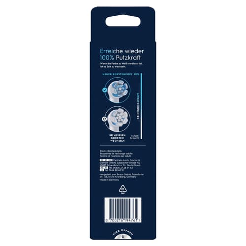 Die Borsten sind präzise auf 16 Grad geneigt, um schwer erreichbare Stellen zu reinigen. Farbwechselnde Borsten zeigen an, wann ein Wechsel des Bürstenkopfs empfohlen wird.