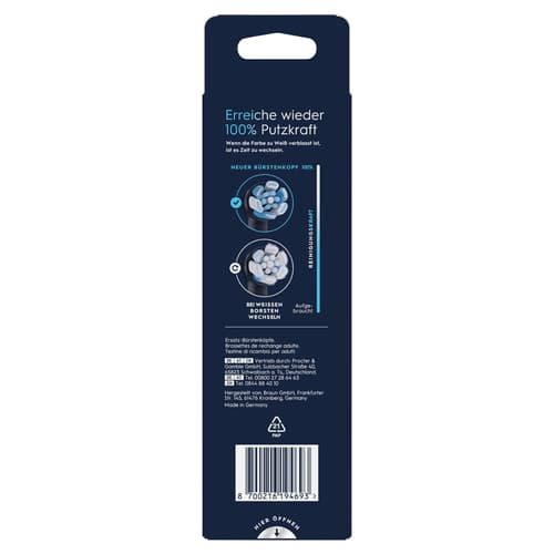 Die Borsten sind präzise auf 16 Grad geneigt, um schwer erreichbare Stellen zu reinigen. Farbwechselnde Borsten zeigen an, wann der Bürstenkopf ausgetauscht werden sollte.