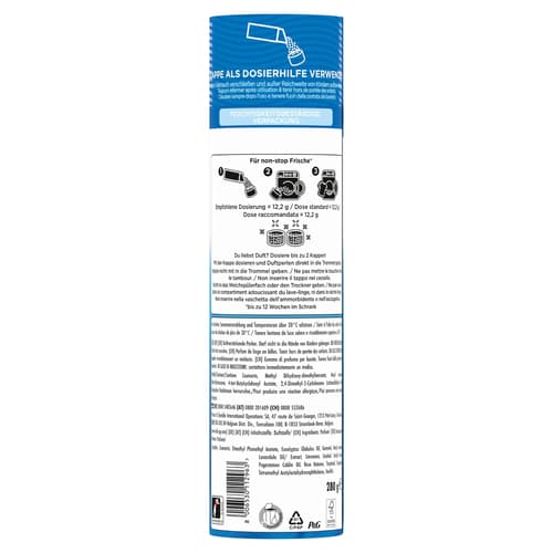 Das Wäscheparfüm wird direkt in die Trommel gegeben und kann nach gewünschter Duftintensität dosiert werden. Für optimale Ergebnisse verwenden Sie es zusammen mit Lenor Waschmittel und Weichspüler.