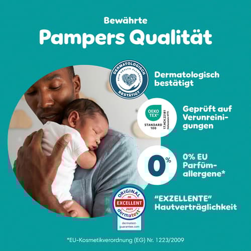 Die Windeln verfügen über einen schnell absorbierenden Kern, ein Stop & Schutz Täschchen gegen Auslaufen am Rücken und doppelte Beinbündchen für zusätzlichen Schutz. Der Urin-Indikator zeigt an, wann ein Wechsel nötig ist. Dermatologisch getestet und OEKO-TEX STANDARD 100 zertifiziert, sind sie sicher für empfindliche Babyhaut.