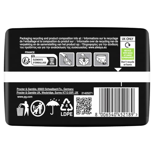 Die weiche Oberfläche sorgt für hohen Komfort, während das dickere Design zusätzlichen Schutz bietet. Always steht für Verlässlichkeit und Qualität und entwickelt Produkte, die den Bedürfnissen der Kundinnen gerecht werden.