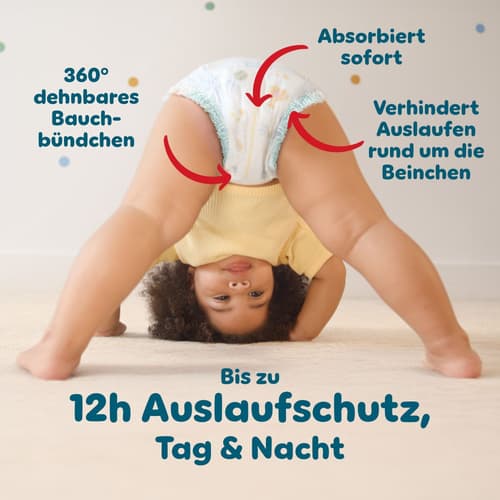 Polen,Wenn dein Baby aktiver wird, braucht es eine Pants, die bequem sitzt, zuverlässigen Schutz bietet und jede Bewegung mitmacht. Mit ihrem revolutionären Stop & Schutz System bieten Pampers Baby-Dry Pants überlegenen Rundum-Auslaufschutz, egal in welcher Position sich dein Baby befindet - Tag und Nacht! Das Stop & Schutz System der Pampers Baby-Dry Pants umfasst: Anti-Auslaufbündchen an den Beinchen, 360° Passform am Bauch, die sich den Bewegungen deines aktiven Babys anpasst, und einen super saugfähigen Kern für bis zu 12 Stunden Schutz. Wie all unsere Pants lassen sich auch Baby-Dry Pants leicht wechseln, selbst wenn dein Baby sich bewegt: zum Anziehen Pants einfach hochziehen, zum Ausziehen die Seitenbündchen aufreißen, einrollen und dank Klebestreifen einfach entsorgen. Genau wie für dich steht die Sicherheit deines Babys auch für Pampers an erster Stelle: Pampers Baby-Dry Pants sind dermatologisch getestet, enthalten 0% EU-Parfümallergene (keine absichtlich hinzugefügten EU-Parfümallergene gemäß der EU-Kosmetikverordnung (EG) Nr. 1223/2009) und sind OEKO-TEX STANDARD 100 getestet und zertifiziert. Möchtest du mehr über die Bestandteile unserer Produkte erfahren? Besuche uns auf pampers.de, pampers.at und pampers.ch.