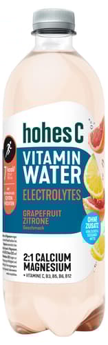 0,75 lHohes C Vitamin Water Electrolyte Grapefruit Zitrone ist ein erfrischendes Getränk, das Elektrolyte und Vitamin C kombiniert. Es bietet eine ideale Unterstützung für einen aktiven Lebensstil und ist perfekt für unterwegs.