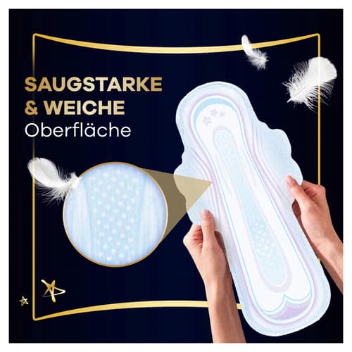 Gib dich nicht mit nicht weniger zufrieden als mit einem guten Schlaf mit bis zu 12 Std. Schutz: Always Ultra Secure Night Extra (Größe 5) Damenbinden mit Flügeln und saugstarker und weicher Oberfläche sind mit 3 Schutzfunktionen ausgestattet, damit du nicht mitten in der Nacht aufwachst, um das Auslaufen zu überprüfen oder deine Binde wechseln zu müssen. Eine um 9% größere Vorderseite und eine um 85% größere Rückseite (im Vergleich zu Always Ultra Normal Größe 1) in Kombination mit unserer LeakGuard-Technologie sorgen für Rumdum-Schutz, um Auslaufen während der Periodennächte zu vermeiden. Always Ultra Binden sind von der Skin Health Alliance dermatologisch bestätigt.