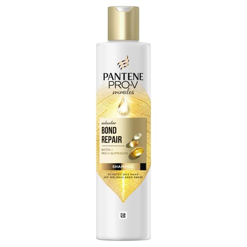 Entecke das Shampoo von Pantene Pro-V mit Biotin für eine Reparatur der Haarbindungen auf molekularer Ebene. Unser Haar enthält Millionen von Bindungen, die mit der Zeit brechen und zu Haarschäden führen. Wenn dein Haar ein Wunder(mittel) braucht, hilft unser molecular Bond Repair Shampoo, die Haarbindungen auf molekularer Ebene zu schützen. Das Haar wird sichtbar gesünder und regenerierter*. Unsere Miracles Formel ist angereichert mit Biotin und unseren am höchsten konzentrierten Pro-V-Nährstoffen. Unsere molecular Bond Repair-Serie wurde entwickelt, um das Aussehen von geschädigtem Haar zu verbessern*. Für beste Ergebnisse, zusammen mit den anderen Haarprodukten der molecular Bond Repair-Serie verwenden: Shampoo, Haarmaske und Intensivpflege. *oberflächliche Haarschäden