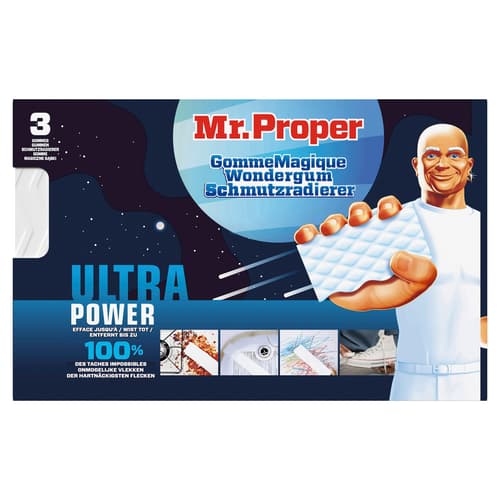 Deutschland,Mr Proper Schmutzradierer Ultra Power entfernt hartnäckigste Flecken. Wände, Spülbeckem und mehr.