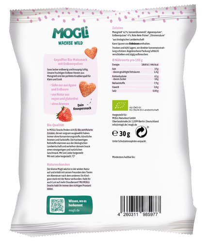 30 gMOGLi Erdbeer Herzen - Erdbeere trifft Knusperspaß