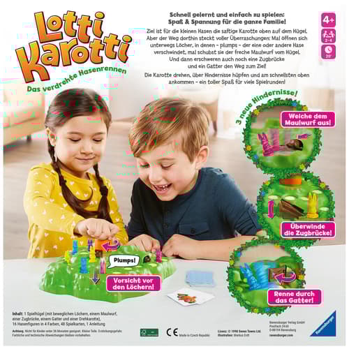 Das Brettspiel Lotti Karotti von Ravensburger bietet Spielspaß für die ganze Familie. Ziel des Spiels ist es, die eigene Karotte als Erste zum Ziel zu bringen, während unerwartete Hindernisse den Weg erschweren.