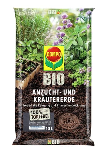 10 lCOMPO BIO Anzucht- und Kräutererde torffrei ist eine hochwertige Bio-Spezialerde, die speziell für Aussaaten, Kräuter, Stecklinge und Jungpflanzen entwickelt wurde. Sie besteht zu 100 % aus natürlichen, nachwachsenden Inhaltsstoffen und ist torffrei.