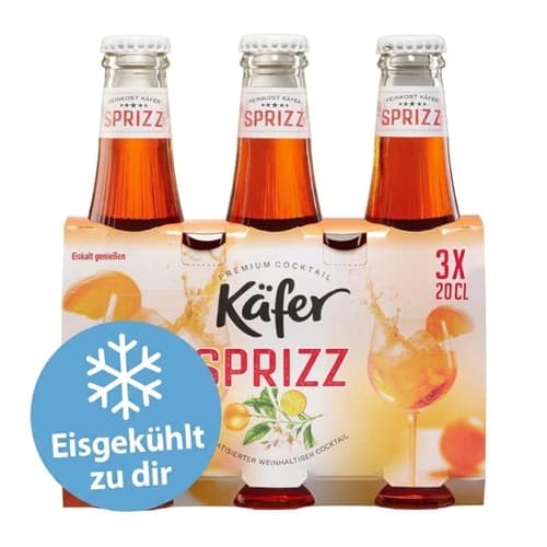 Der erfrischende Käfer Sprizz ist ein alkoholisches Mischgetränk mit 6,9% Alkohol, ideal als Aperitif oder für gesellige Runden. Er wird in praktischen 3x0,2 l Mehrwegflaschen aus Deutschland geliefert, perfekt zum Teilen oder für unterwegs. Servieren Sie ihn gut gekühlt, um seinen vollen Geschmack zu genießen. Eine Altersprüfung bei Lieferung ist erforderlich.
