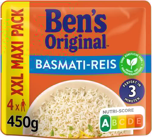 Zutaten: dampfgegarter Basmatireis (98%), Sonnenblumenöl. Kann enthalten: ERDNÜSSE, GERSTE, CASHEWNÜSSE, SELLERIE, MILCH, SENF, HAFER, SESAM, SOJA, WEIZEN, da in einer Anlage produziert, die auch diese Zutaten verwendet.