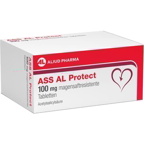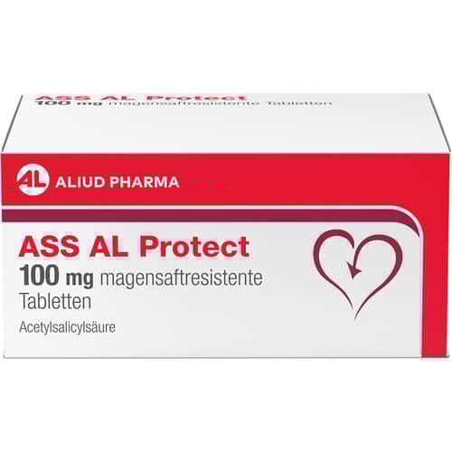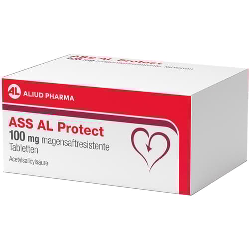 ASS AL Protect 100 mg magensaftresistente Tabletten Wirkstoff: Acetylsalicylsäure. Anwendungsgebiete: um das Risiko der Entstehung von Blutgerinnseln zu verringern und folgenden Erkrankungen vorzubeugen: Herzinfarkt, Schlaganfall,Probleme des Herz-Kreislauf-Systems bei Patienten mit stabiler oder instabiler Angina Pectoris (Schmerzen im Brustbereich).Zu Risiken und Nebenwirkungen lesen Sie die Packungsbeilage und fragen Sie Ihre Ärztin, Ihren Arzt oder in Ihrer Apotheke.