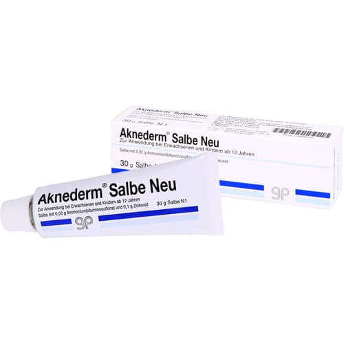 Aknederm Salbe Neu 1 g Salbe mit 0,02 g Ammoniumbituminosulfonat und 0,1 g Zinkoxid. Anwendungsgebiete: als mild wirkendes Arzneimittel bei Hautunreinheiten.Zu Risiken und Nebenwirkungen lesen Sie die Packungsbeilage und fragen Sie Ihre Ärztin, Ihren Arzt oder in Ihrer Apotheke.