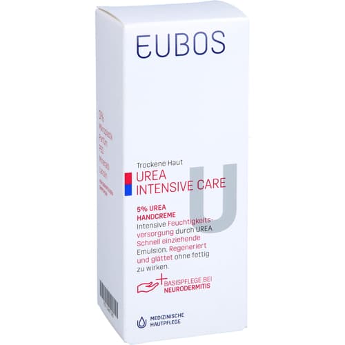Trockene Haut weist oft einen Mangel an Lipiden und insbesondere an Urea – einem physiologischen, natürlichen Feuchthaltefaktor – auf. EUBOS 5 % UREA HANDCREME versorgt die Haut intensiv mit Feuchtigkeit bindendem Urea und erhöht so deutlich die Hydratationsfähigkeit der Haut. Der Vitaminpflegekomplex mit Vitamin E, Pro-Vitamin B 5 (D-Panthenol), Allantoin und dem essentiellen Hautvitamin Niacinamid (Vitamin PP) hilft, die hauteigene Regeneration zu fördern und die Hautstruktur wirksam zu verbessern. Wertvolle Pflegekomponenten mit Shéa-Butter wirken lipidspendend und beruhigen gereizte Haut.Zur besonders guten Verträglichkeit