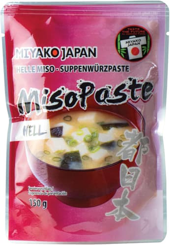 Die Miso-Suppenpaste von Miyako stellt eine wesentliche Komponente vieler japanischer Gerichte dar. Mit seiner hellen Farbe hat sie einen milderen und süßeren Geschmack als ihre dunkle Gegenpartei. Traditionell aus Sojabohnen, Reis und Salz hergestellt, liefert diese Paste die unverwechselbare umami Geschmacksnote, die Miso-Suppen so einzigartig und lecker macht. Einfach in heißem Wasser auflösen und als schneller Genuss oder als Beilage zu Hauptgerichten servieren.