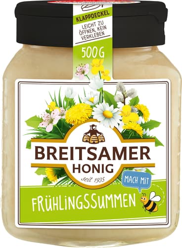 Der Frühlingsblütenhonig von Breitsamer stammt aus der ersten Honigernte im Jahr. Cremige Konsistenz und blumig, fein süßer Geschmack. Das Besondere: 40 Cent pro Glas unterstützen Initiativen zur "Bienenfreundlichen Bepflanzung"!
