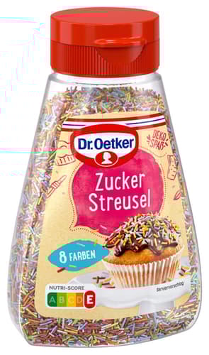 Ein Klassiker unter den Streudekoren. In ihrer farbigen Vielfalt verzieren die bunten Zucker Streusel nicht nur Gebäck, Kuchen und Torten. Mit der wiederverschließbaren Flasche ist das Dosieren besonders leicht - so lassen sich auch Desserts und Eis effektvoll in kleine Kunstwerke verwandeln.