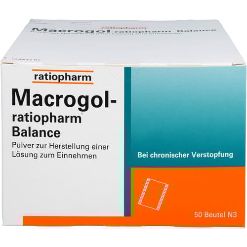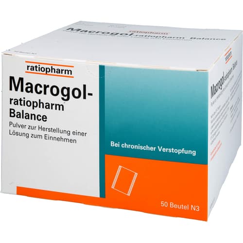Macrogol-ratiopharm Balance Pulver. Anwendungsgebiete: zur Behandlung von chronischer Verstopfung bei Jugendlichen, Erwachsenen und älteren Patienten.Zu Risiken und Nebenwirkungen lesen Sie die Packungsbeilage und fragen Sie Ihre Ärztin, Ihren Arzt oder in Ihrer Apotheke!