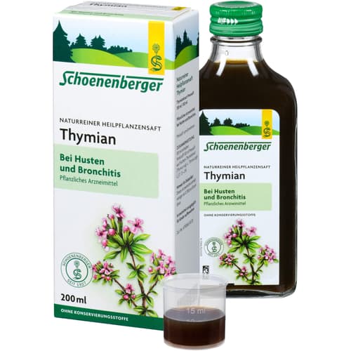 100 ml enthalten: Wirkstoff: 100 ml Presssaft aus frischem Thymiankraut (Thymus vulg. L., Thymus zygis L.) (1 : 1,5 - 2,4).Darreichungsform und Packungsgrößen