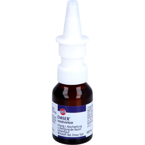 Emser Nasenspray. Wirkstoff: Natürliches Emser Salz. Anwendungsgebiete: Zur unterstützenden Behandlung durch Befeuchtung, Reinigung und Abschwellung der Nasenschleimhaut bei banalen akuten Infektionen der oberen Atemwege und chronischen Nasen- und Nasennebenhöhlenentzündungen und als begleitende Behandlungsmaßnahmen zur Beschleunigung des Heilungsprozesses nach endonasaler Nebenhöhlenoperation.Zu Risiken und Nebenwirkungen lesen Sie die Packungsbeilage und fragen Sie Ihre Ärztin, Ihren Arzt oder in Ihrer Apotheke.