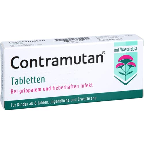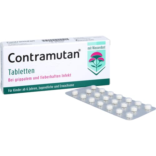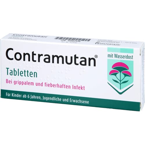 Contramutan Tabletten. Anwendungsgebiete: Die Anwendungsgebiete leiten sich von den homöopathischen Arzneimittelbildern ab. Dazu gehören: Fieberhafte grippale Infekte mit Entzündungen der oberen Luftwege. Warnhinweis: Enthält Lactose.Zu Risiken und Nebenwirkungen lesen Sie die Packungsbeilage und fragen Sie Ihre Ärztin, Ihren Arzt oder in Ihrer Apotheke.